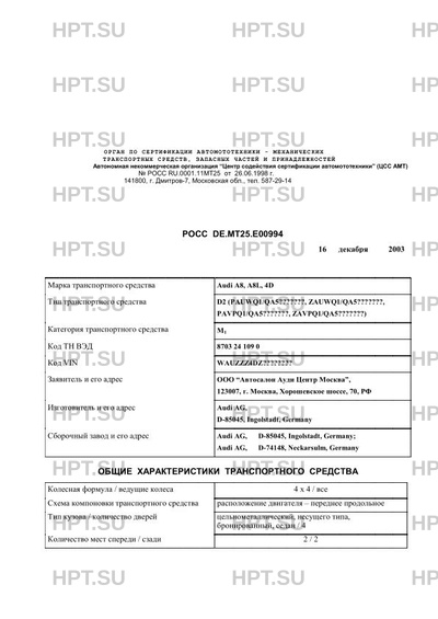 | Тип ТС | D2 (PAUWQ1/QA5???????, ZAUWQ1/QA5???????, PAVPQ1/QA5???????, ZAVPQ1/QA5???????) |