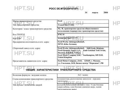 | Сборочный завод | Ford-Werke Aktiengesellschaft, 3600 Genk, Belgium; Ford Otomotiv Sanayi A.S., Izmit Golchuk Yolu 14 km, Ihsaniye, Golchuk, Turkey; Ford Motor Company Ltd., Southampton, S09 2LH, United Kingdom Представитель заявителя и его адрес Ford Motor Company, ZAO, 125445, г. Москва, ул. Смольная, 24/D, Бизнес-центр "Меридиан", РФ |