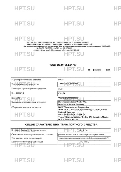 | Сборочный завод | и их адреса BMW Manufacturing Corporation, Werk 10, P.O. Box 3138, Spartanburg, SC29304, United States of America; BMW de Mexico, S. A. de C. V., Toluca Planta de Automoviles Km 47,5 Carretera Mexico D. F. - Toluca, Mexico |