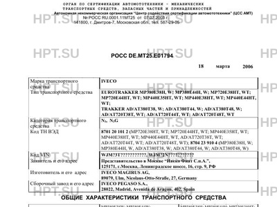 | Заявитель | Представительство в Москве "Ивеко Фиат С.п.А.", 125171, г.Москва, Ленинградское шоссе, 16, стр. 9, РФ |