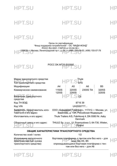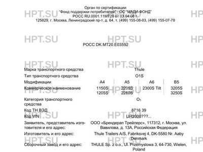 | Марка ТС | Thule |