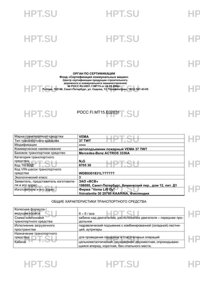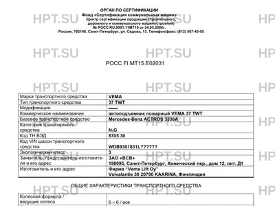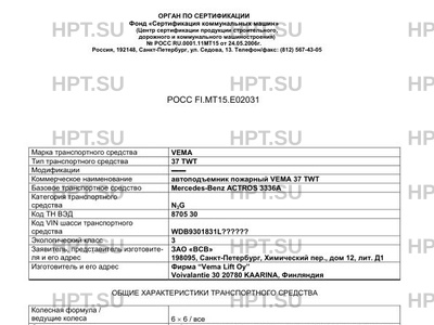 Коммерческое наименование автоподъемник пожарный VEMA 37 TWT