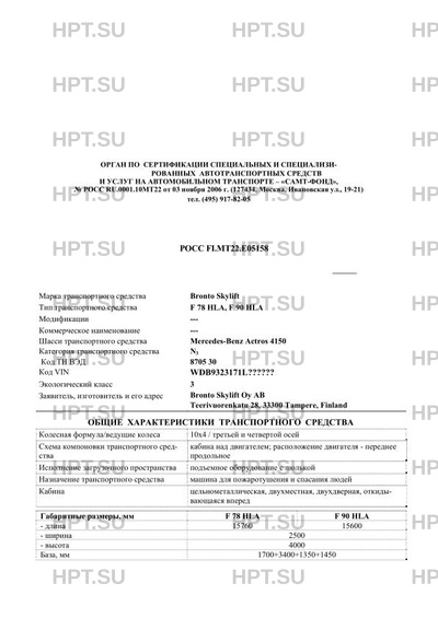 | Коммерческое наименование | F 78 HLA, F 90 HLA на шасси Mercedes-Benz Actros 4150 |