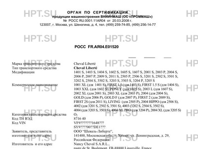 Предприятие-изготовитель Nancy Cheval S.A.R.L., route de St. Baslemont, FR-88800 Lingeville, France