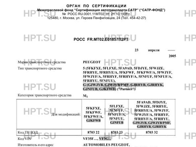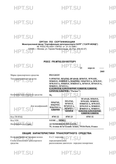 | Марка ТС | PEUGEOT |
