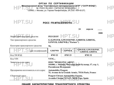| Оборудование ТС | кондиционер (хладагент R134A), электростеклоподъемники, центральный замок PEUGEOT G (GJWJYB, GJWJYB/PMF, GJRHYB, GJRHYK, GJNFUB, GJKFWB) ("Partner") |
