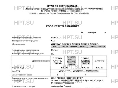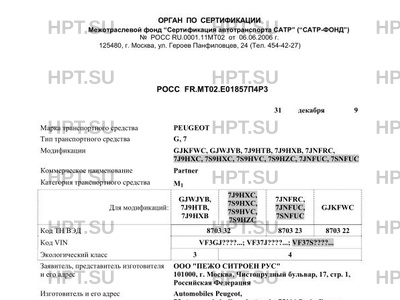 Предприятие-изготовитель Automobiles Peugeot, 75, Avenue de la Grande Armée, 75116 Paris, France