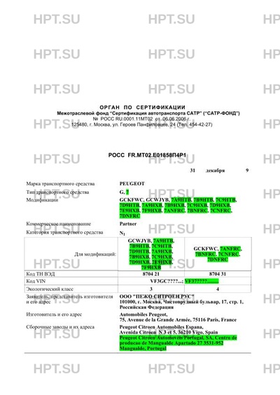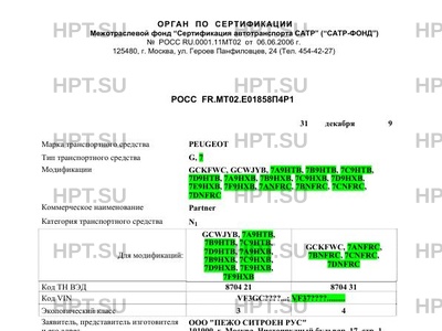 Код VIN VF3GC????...; VF37????.........