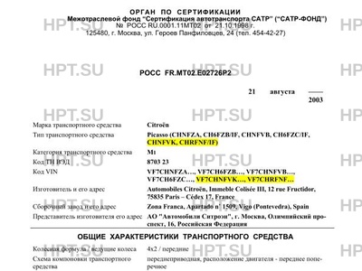 | Оборудование ТС | кондиционер (хладагент R134a), электростеклоподъемники, противоугонная система, аудиосистема, круиз-контроль автомобиль легковой Picasso (CHNFZA, CH6FZB/IF, CHNFVB, CH6FZC/IF, CHNFVK, CHRFNF/IF) |