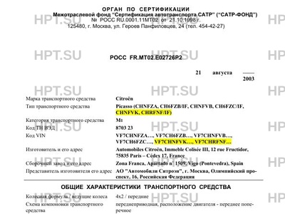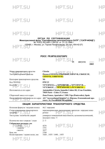 | Марка ТС | Citroën Picasso (CHNFZA, CH6FZB/IF, CHNFVB, CH6FZC/IF |