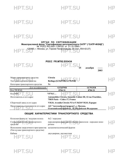 | Коммерческое наименование | Berlingo (GCKFWB, GCWJYB) |