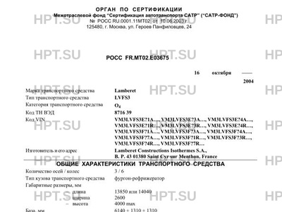 | Оборудование ТС | холодильная установка Thermoking или Carrier При проезде транспортных средств Lamberet LVFS3 по автомобильным дорогам общего пользования, а также по улицам городов и населенных пунктов должны быть выполнены требования "Инструкции по перевозке крупногабаритных и тяжеловесных грузов автомобильным транспортом по дорогам Российской Федерации". полуприцеп Lamberet LVFS3 |