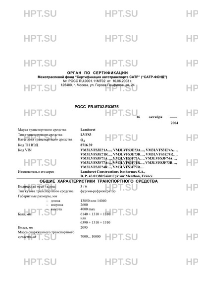 | Предприятие-изготовитель | Lamberet Constructions Isothermes S.A., B. P. 43 01380 Saint Cyr sur Menthon, France |