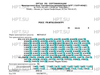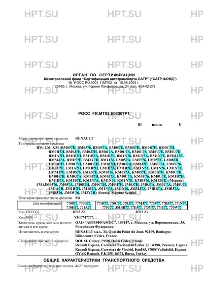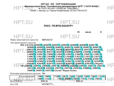 | Марка ТС | RENAULT |