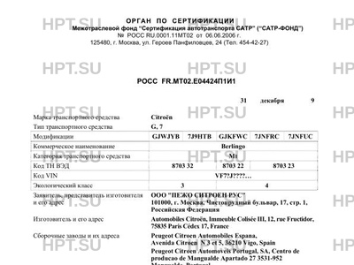 | Коммерческое наименование | G, 7 (GJWJYB, 7J9HTB, GJKFWC, 7JNFRC, 7JNFUC) Berlingo |