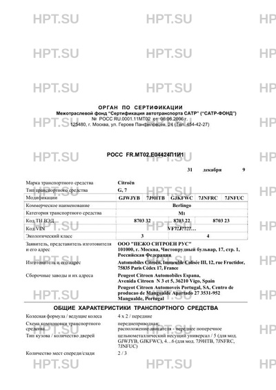 | Тип ТС | G, 7 (GJWJYB, 7J9HTB, GJKFWC, 7JNFRC, 7JNFUC) Berlingo |
