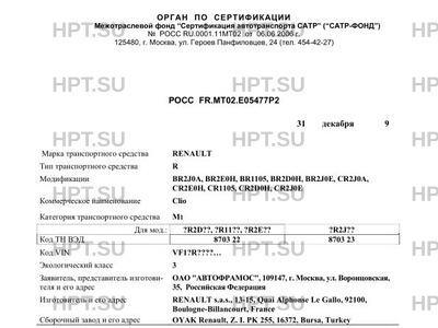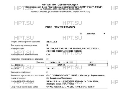 | Марка ТС | RENAULT |