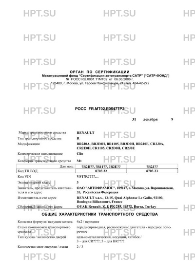 | Категория ТС | M1 Для мод.: ?R2D??, ?R11??, ?R2E?? ?R2J?? |