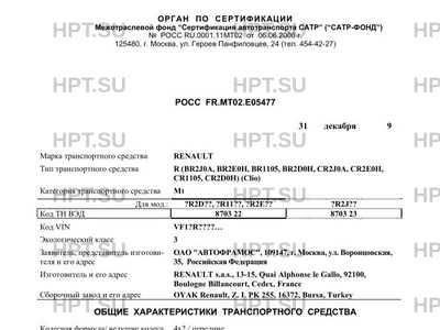 | Марка ТС | RENAULT |