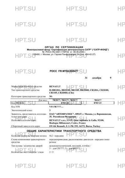 | Тип ТС | R (BR2J0A, BR2E0H, BR1105, BR2D0H, CR2J0A, CR2E0H, CR1105, CR2D0H) (Clio) |