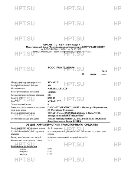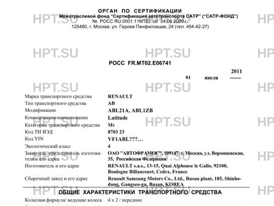 | Оборудование ТС | ремни безопасности с преднатяжителем, подушки безопасности, система контроля распределения тормозных сил по колесам (REF), система контроля режима работы двигателя (MSR), система помощи при экстренном торможении (AFU); опции: круиз-контроль, система ограничения скорости, система динамической стабилизации (ESP / CDC), противобуксовочная система (ASR), система подготовки к экстренному торможению (RAB), система контроля устойчивости при движении с прицепом (TSA), система для предотвращения опрокидывания (ARP), бортовой компьютер, система автоматического включения стеклоочистителя, система автоматического включения фар, противотуманные фары, система навигации, система помощи при парковке, камера заднего вида, омыватели фар, электропривод и/ или обогрев зеркал заднего вида, электростеклоподъемники, дистанционное управление замками дверей, система климат-контроля или кондиционер (хладагент R-134a (HFC-134a)), распылитель духов для салона, аудиосистема, стереомагнитола/ CD-проигрыватель/ CD-чейнджер, люк в крыше, частичное или полное остекление крыши, фильтр салона, солнцезащитные шторки, регулируемые по высоте передние сидения, массажное сиденье для водителя, электрообогрев сидений RENAULT AB |