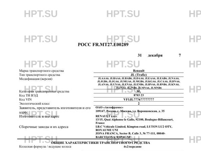 Коммерческое наименование JL (Trafic) (JLAAА6, JLBAА6, JLBAB6, JLDAА6, JLEAА6, JLEAB6, JLNAA6, JLJGB6, JL…