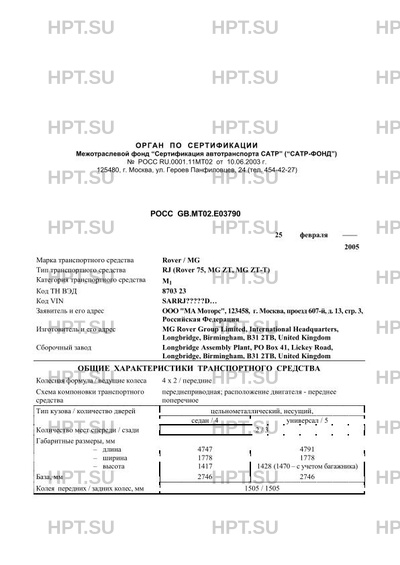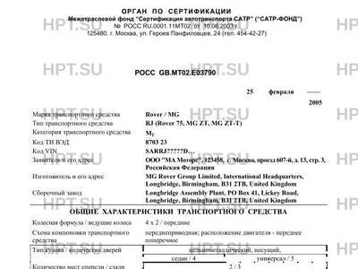 | Тип ТС | RJ (Rover 75, MG ZT, MG ZT-T) |