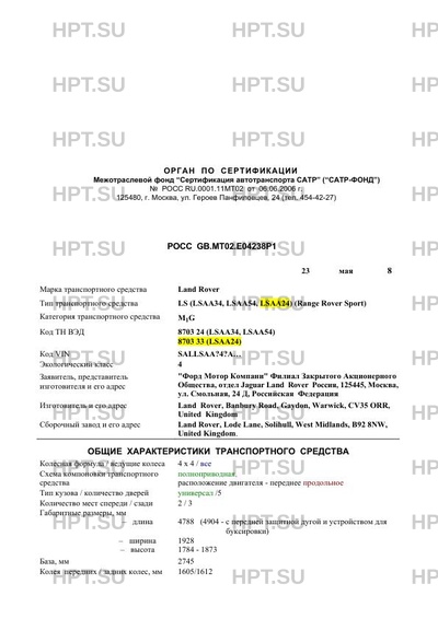 | Тип ТС | LS (LSAA34, LSAA54, LSAA24) (Range Rover Sport) |