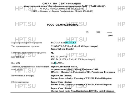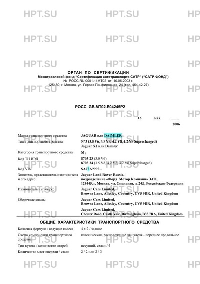 | Тип ТС | N*3 (3.0 V6, 3.5 V8, 4.2 V8, 4.2 V8 Supercharged) Jaguar XJ или Daimler |