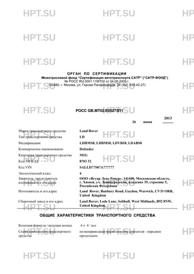 | Код VIN | SALLD??S8?A?????? |