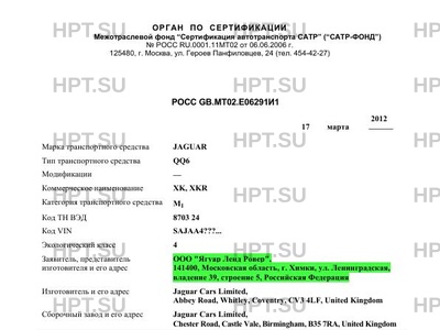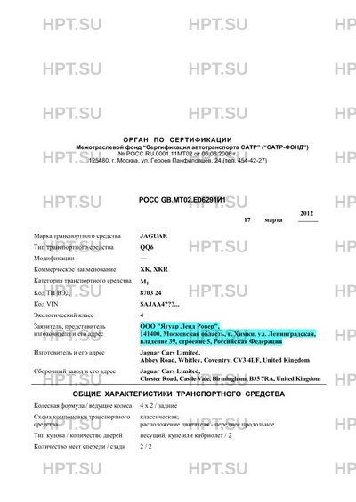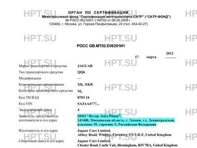 | Предприятие-изготовитель | Jaguar Cars Limited, Abbey Road, Whitley, Coventry, CV3 4LF, United Kingdom Jaguar Cars Limited, Chester Road, Castle Vale, Birmingham, B35 7RA, United Kingdom |