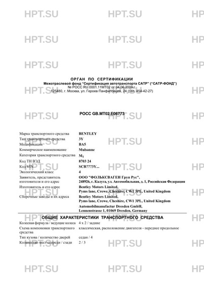 | Марка ТС | BENTLEY |