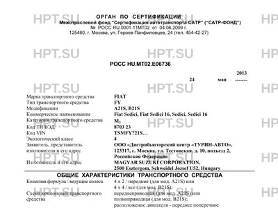 | Оборудование ТС | система курсовой устойчивости (ESP), кондиционер или система климат-контроля (хладагент R134a), подушки безопасности, преднатяжители ремней безопасности 4 FIAT FY |
