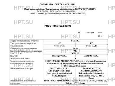 | Заявитель | ООО "СУЗУКИ МОТОР РУС", 119435, г. Москва, Саввинская набережная, 15, Бизнес-центр на Саввинской набережной, Российская Федерация |