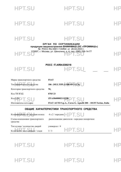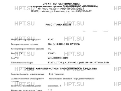 | Коммерческое наименование | 186 (MULTIPLA 100 16V ELX) |