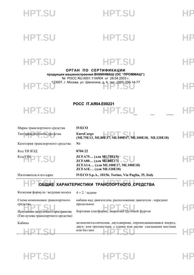 | Тип ТС | EuroCargo (ML75E13, ML80E17, ML100E17, ML100E18, ML120E18) |