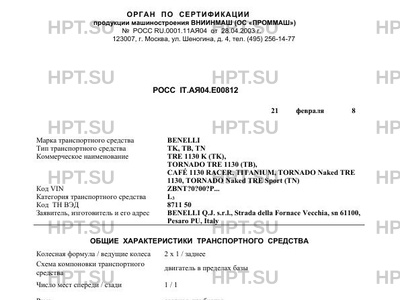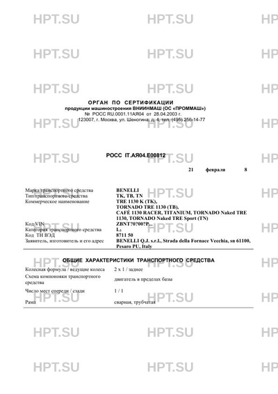| Марка ТС | BENELLI |