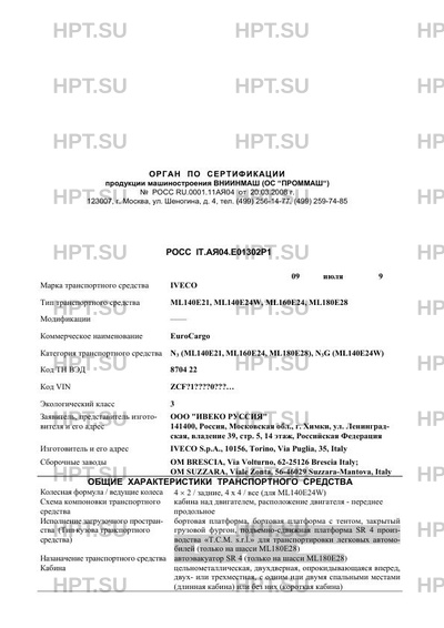 | Предприятие-изготовитель | IVECO S.p.A., 10156, Torino, Via Puglia, 35, Italy |
