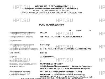 | Заявитель | ООО "ИВЕКО РУССИЯ" 141400, Россия, Московская обл., г. Химки, ул. Ленинградская, владение 39, стр. 5, 14 этаж, Российская Федерация |