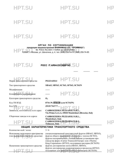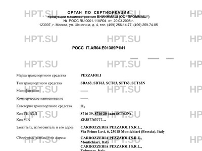 | Заявитель | СARROZZERIA РEZZAIOLI S.R.L., Via Primo Levi, 6, 25018 Montichiari (Brescia), Italy |