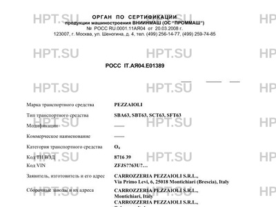 | Заявитель | СARROZZERIA РEZZAIOLI S.R.L., Via Primo Levi, 6, 25018 Montichiari (Brescia), Italy |