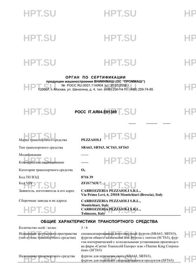 | Марка ТС | РEZZAIOLI |