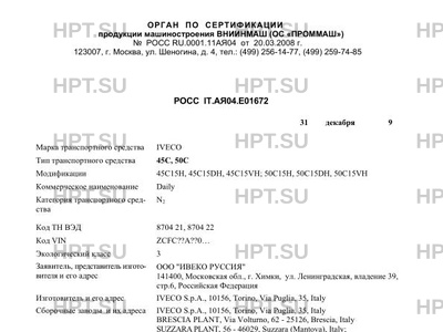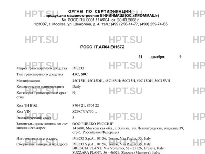 | Заявитель | ООО "ИВЕКО РУССИЯ" 141400, Московская обл., г. Химки, ул. Ленинградская, владение 39, стр.6, Российская Федерация |