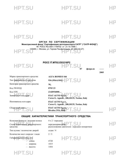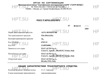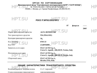 Марка ТС ALFA ROMEO 166