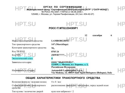Марка ТС LAMBORGHINI