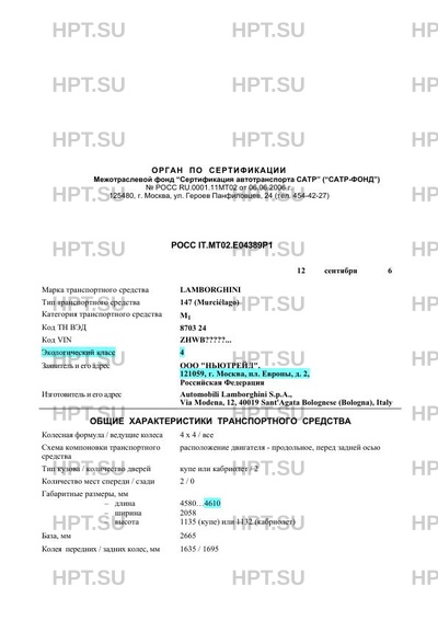 Предприятие-изготовитель Automobili Lamborghini S.p.A., Via Modena, 12, 40019 Sant'Agata Bolognese (Bologna), Italy
