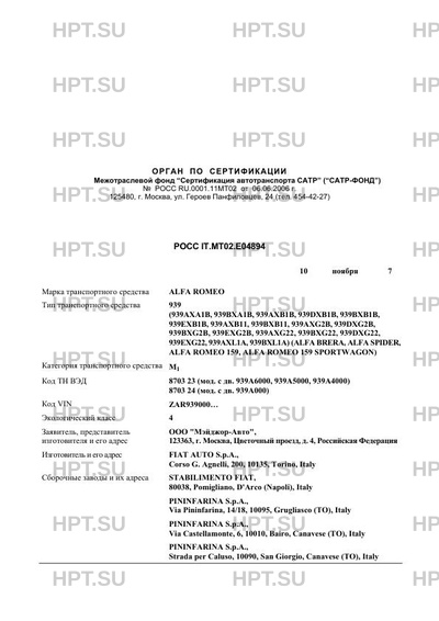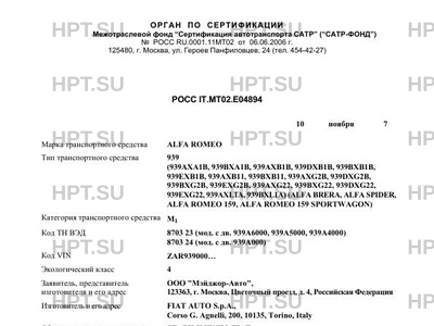 | Коммерческое наименование | 939 (939AXA1B, 939BXA1B, 939AXB1B, 939DXB1B, 939BXB1B, 939EXB1B, 939AXB11, 939BXB11, 939AXG2B, 939DXG2B, 939BXG2B, 939EXG2B, 939AXG22, 939BXG22, 939DXG22, 939EXG22, 939AXL1A, 939BXL1A) (ALFA BRERA, ALFA SPIDER,ALFA ROMEO 159, ALFA ROMEO 159 SPORTWAGON) |
