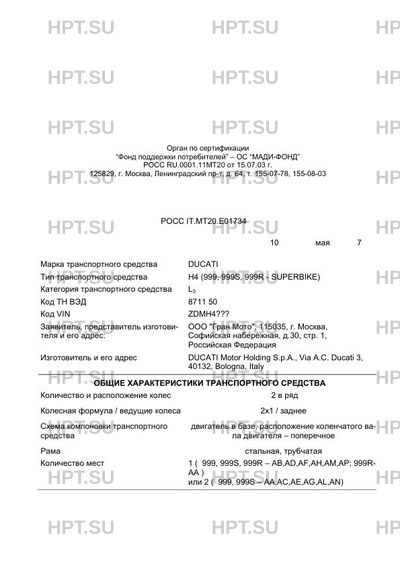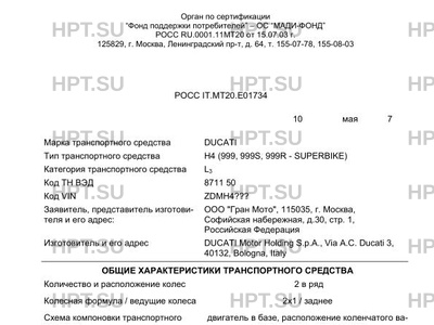 | Тип ТС | H4 (999, 999S, 999R - SUPERBIKE) |