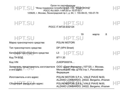 | Марка ТС | POLINI MOTORI |