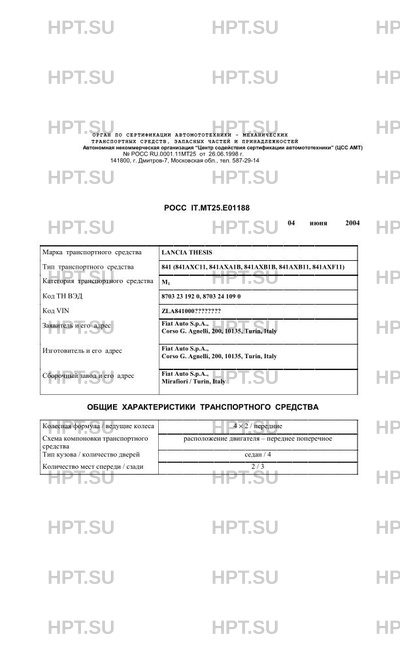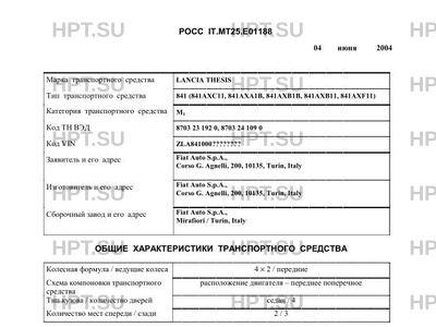 | Предприятие-изготовитель | Fiat Auto S.p.A., Corso G. Agnelli, 200, 10135, Turin, Italy |